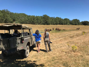 Se realiza acompañados por un conductor-guía especializado, pasando por las distintas localizaciones donde están los animales. En el transcurso del viaje se describe al completo el ecosistema prehistórico, el proyecto y las diferencias ente nuestros antepasados y nosotros. Se visitan las 4 especies intentando acercar el vehículo lo más posible a ellas y permitiendo a los visitantes un tiempo para las fotografías. También incluye un paseo por la reserva.
